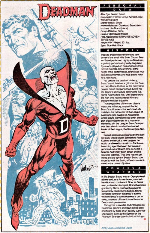 Boston Brand was a daredevil circus aerialist who “cheated death” every night. Until a hook-handed assassin took his life.